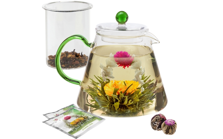 Blooming Oasis Teapot - 34 oz. Glass Teapot with Loose-Leaf Tea Infuser