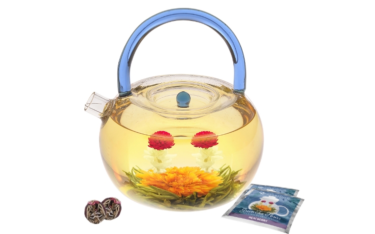 Blue Rainbow Glass Teapot Kettle with strainer - 40 oz / 1200 ml