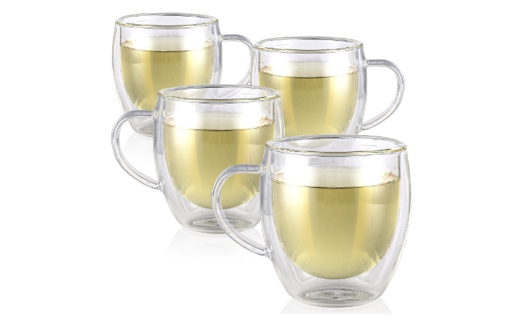 CLARITY® Double Walled Cups – Insulated Glass Cups for Tea - 8oz / 250ml (Set of 4)